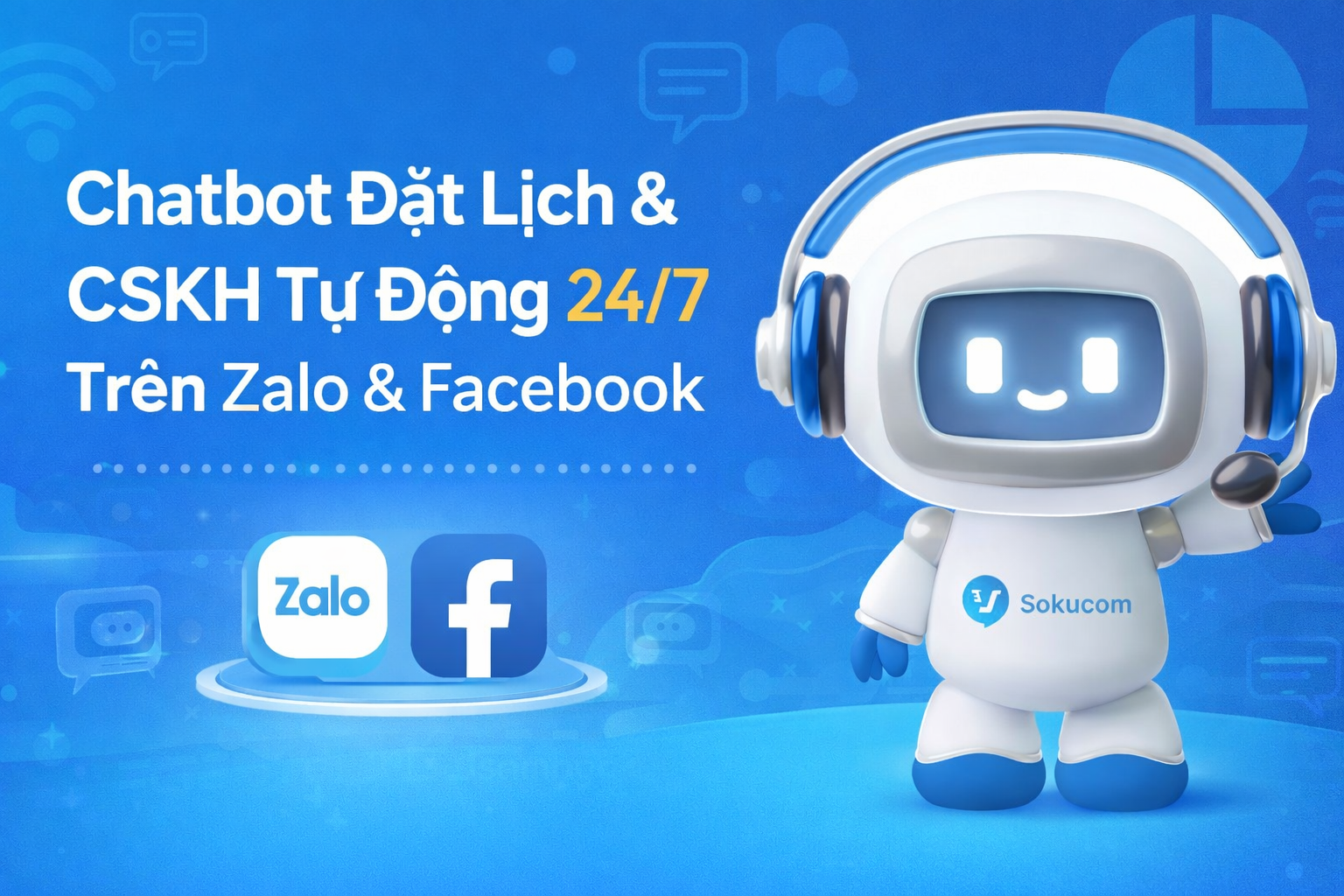 Giải pháp Chatbot đặt lịch Zalo & Facebook tự động 24/7 từ Sokucom giúp doanh nghiệp phản hồi tức thì, chính xác 100%, không lo sót lịch. Tự động hóa quy trình đặt lịch và chăm sóc khách hàng chuyên nghiệp, giảm tải vận hành và bứt phá doanh thu ngay hôm nay!