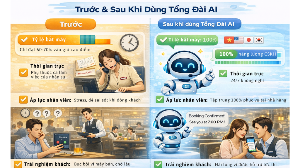 So Sánh Trước & Sau Khi Dùng Tổng Đài AI