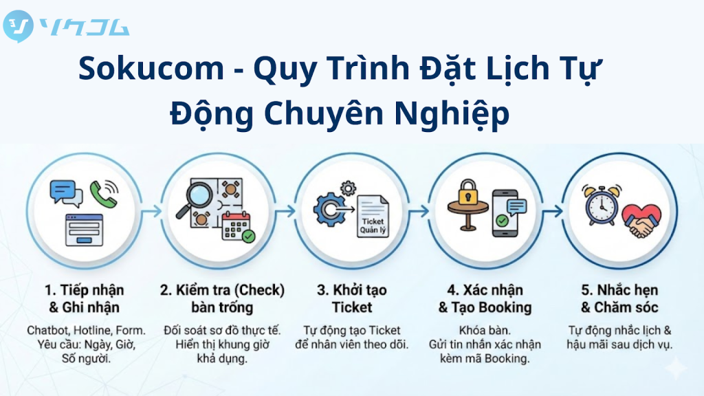 Quy trình của Sokucom được thiết kế để đồng bộ dữ liệu dù khách đặt qua khung chat, gọi điện hotline hay điền form booking: