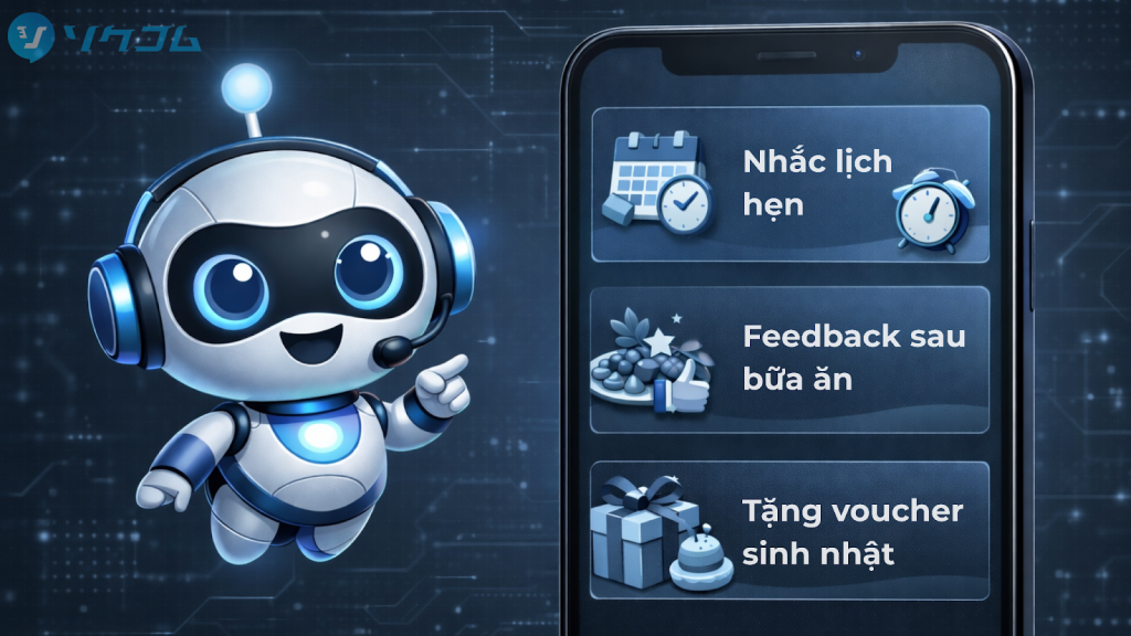 - Nhắc hẹn & Chăm sóc: Tự động nhắc lịch trước giờ đến và thực hiện các kịch bản hậu mãi sau dịch vụ.