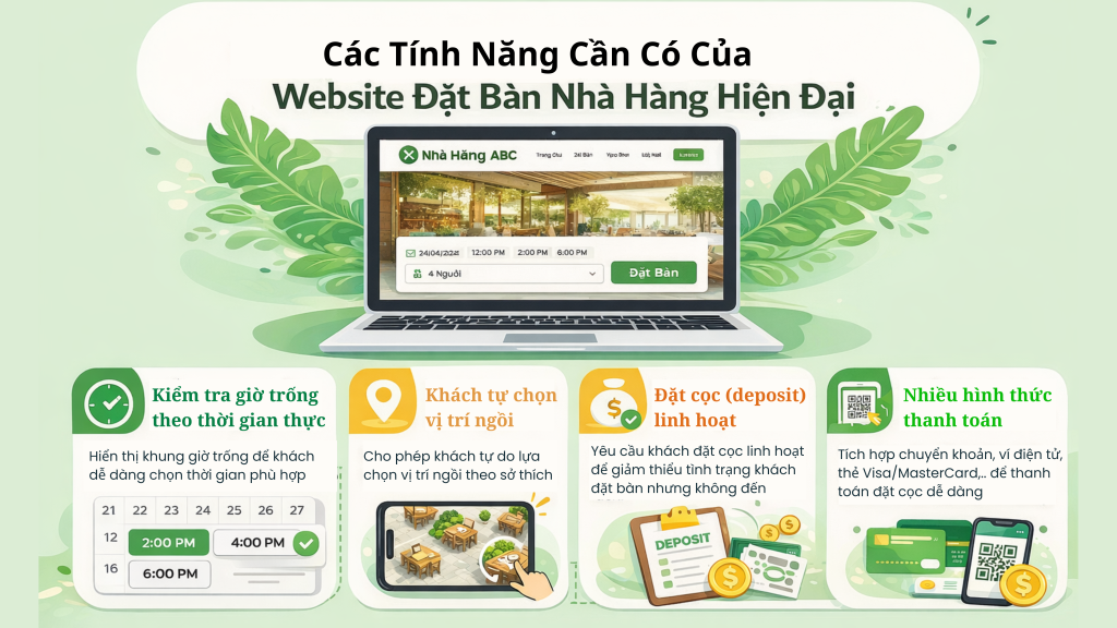 - 4 Các tính năng bắt buộc của website đặt bàn nhà hàng hiện đại
