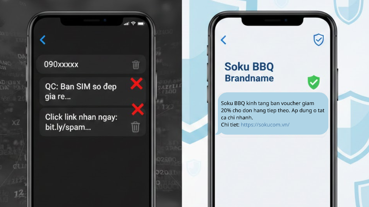 - Tăng uy tín thương hiệu: Với Sokucom, tin nhắn hiển thị tên nhà hàng (Brandname) thay vì số rác, giúp khách hàng an tâm và ghi nhớ thương hiệu lâu dài.