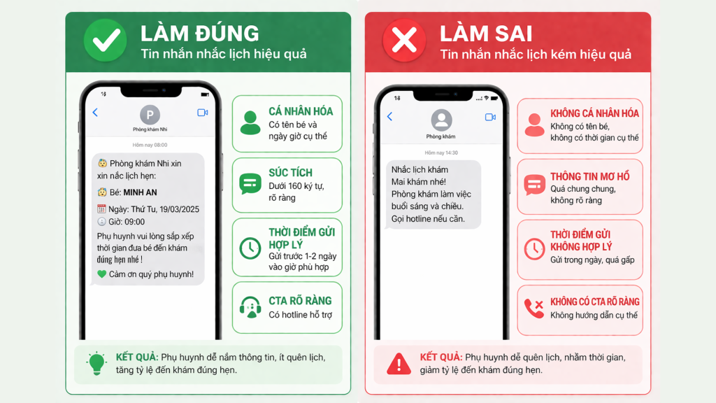Việc chủ động gửi tin nhắn nhắc lịch mang lại lợi ích “kép” cho cả gia đình và cơ sở y tế: